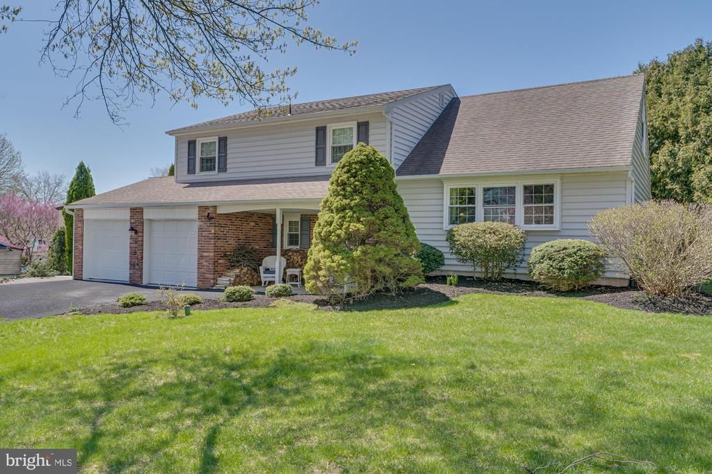 Nestled in the highly desirable Neshaminy Hills neighborhood, this beautifully maintained split-level home offers exceptional curb appeal and timeless charm. Mature trees and lush landscaping frame the classic brick-and-siding exterior, creating a warm and inviting first impression. A driveway and two-car garage provide ample parking, while the covered front porch welcomes you. Step inside to the foyer featuring gleaming hardwood floors and elegant crown molding that continues throughout much of the home. A conveniently located coat closet and powder room add everyday functionality. Just a few steps up, the sun-filled formal living and dining rooms offer an ideal setting for entertaining, with oversized windows, refined chair rail detailing in the dining room, and an airy, open feel. The eat-in kitchen is both stylish and practical, boasting abundant hardwood cabinetry, a dedicated pantry, stainless steel appliances, a tasteful tile backsplash, and recessed lighting. Just beyond, the inviting family room serves as the heart of the home, highlighted by a stunning all-brick, wood-burning fireplace with built-in storage. Sliding Glass doors lead to the outdoor deck, filling the space with natural light and creating a seamless indoor-outdoor flow. A laundry room with direct access to the garage completes this level. Upstairs, you’ll find three generously sized bedrooms, all featuring hardwood flooring and crown molding. The primary suite offers a large double closet, chair rail detail, and convenient access to a Jack-and-Jill full bathroom. The additional bedrooms are equally spacious, each with ample closet space, and share the well-appointed bathroom with a tub/shower combination and attractive tile flooring. A linen closet and access to a floored attic provide even more storage options. The lower level features a large unfinished basement with built-in shelving, perfect for storage or ready to be finished to suit your needs. Outdoor living is a true highlight of this home. The expansive, covered deck includes skylights that fill the space with natural light, making it perfect for dining al fresco or relaxing in any weather. A designated grilling area and charming octagonal seating space make entertaining effortless, all overlooking a beautifully landscaped backyard with mature trees and a manicured lawn. This home combines comfort and functionality in a sought-after location. Don’t miss the opportunity to make it yours. Schedule your showing today!