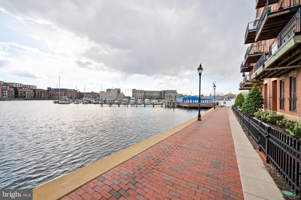 Welcome to 2323 Boston Street Unit 6—an end-of-group, 4-level waterfront townhome with a 2-car garage in North Shore, a premier Canton community directly on the promenade. Enjoy breathtaking water views from nearly every room, as well as two private balconies. The entry level offers a flexible space perfect for a home office or game room. The main level impresses with hardwood floors, a chef’s kitchen featuring dark cabinetry, granite counters, under-cabinet lighting, Viking stove with hood, a designer backsplash, and an eat-in island—all opening to a spacious dining and living area with direct balcony access and waterfront views. Upstairs, you'll find two bedroom suites, including one with a built-in desk overlooking the water, plus a laundry room and utility space. The top-level primary suite is a true retreat, featuring two walk-in closets, stunning water views, a private balcony, and a spa-like bath with a soaking tub, glass shower, and double vanity. A new dual-zoned HVAC (installed in 2024) and a newer water heater enhance efficiency and provide peace of mind. Located steps from Historic Fells Point and all the best waterfront restaurants, shops, and lifestyle amenities, this is city living at its finest.