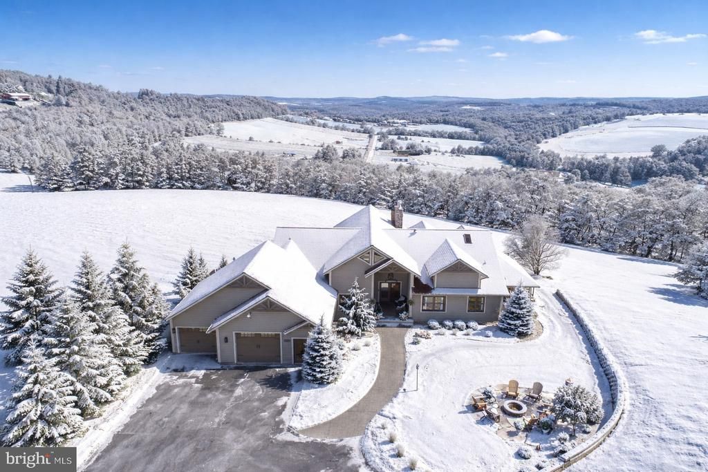 Perched on 16±/- private acres with sweeping, panoramic mountain views stretching into Pennsylvania and West Virginia, this custom hilltop estate offers the perfect blend of luxury and privacy. Designed with both comfort and craftsmanship in mind, the home features a gourmet kitchen with Viking appliances, radiant floor heat, two fireplaces, and thoughtfully curated finishes throughout. The spacious layout includes 4 bedrooms, 3 full baths, and 2 half baths, offering room to gather and retreat. A 2-car attached garage is complemented by an impressive 40’ x 80’ detached shop/garage complete with finished “man-cave” space—ideal for hobbies, entertaining, or additional storage. A whole-house generator provides added peace of mind. Enjoy tranquil rural living just 15 minutes from Deep Creek Lake and Wisp Resort—where refined mountain living meets convenience.