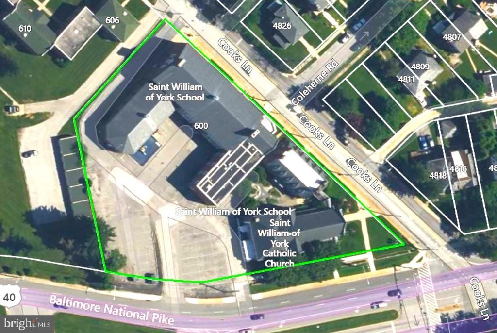 St William of York is a religious and educational facility comprising five separate sections: a one-story 3,512 SF sanctuary, with seating for ±200, built 1914; a two-story 3,693 SF rectory; a three-story 6,812 SF parish center (originally a convent), built 1947; a two-story 22,307 SF school, built 1947; and a one-story 3,836 SF gymnasium and kitchen, built 1951. This ±40,160 SF complex is allowed by zoning to operate as a primary and secondary education facility. The property is also ideal for a religious buyer who desires to incorporate a school and/or childcare in its ministry. The two-level school wing, built in 1947, includes nine sunny classrooms, a gym, and kitchen. The parish center can be adapted for additional classrooms, meeting rooms, administrative offices, and reception area. The rectory can also be adapted for offices, classrooms, or additional spaces for ministry. The sanctuary, which seats under 200, can be used for worship, or could be adapted for use as an auditorium or large multipurpose room. The church has recently closed, and parts of the school are currently under a short-term lease. Overall, the building is in average condition and could be improved with some cosmetic updates and the installation of central air. Located on the busy corner of Edmondson Ave and Cooks Ln, the ±1.69-acre property boasts ±382 feet and ±405 feet of frontage, with 33,702 vehicles per day on Route 40/Edmondson Ave (2024 SHA). There are ±65 paved parking spaces. HVAC is gas-fired boiler heat and a small percentage of the property with central A/C and window units. The roofing is a combination of pitched slate, asphalt, and flat rubber membrane (may be a leak in school roof). Flooring is largely terrazzo, with some wood and carpeting. The property is inventoried with MHIP as B-5100. Not available for lease or lease-to-own. The seller will remove religious items (sacred goods) from the property before sale, including sanctuary windows. The property will be sold as is, where is. Tours are available with registration and qualification: name, address, mortgage pre-qualification letter, and bank statement demonstrating funds available for deposit and closing. More photos coming Aug 31.